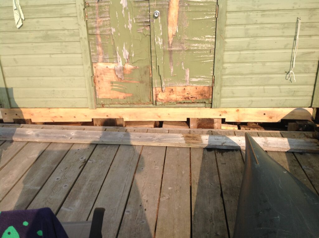 Was looking to repair rotten first floor joist of boathouse if that is all right with the community? Oh okay great because here is the report :The first dock bumper board was starting to fall off because it had nothing to screw into. I took it out and this is it.