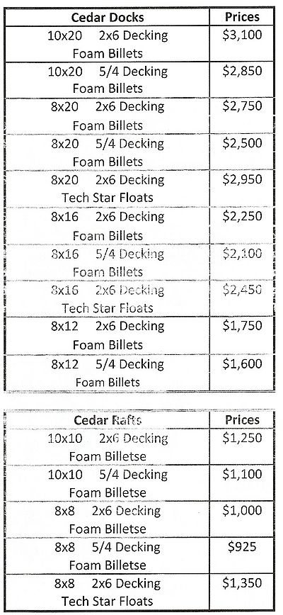 Dwight Lumber Pre-fab dock prices
