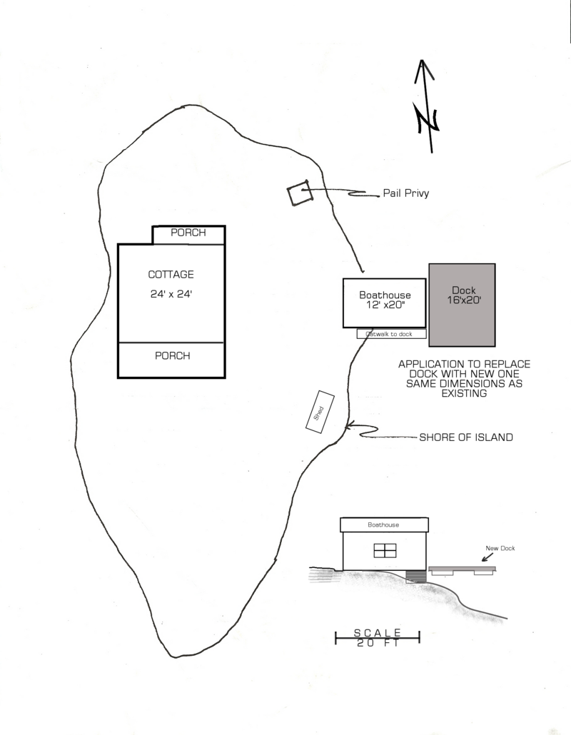 It would be much appreciated, within your submission, that you provide a clear diagram/drawing with dimensions of both dock structures – that which is new and that which is to be replaced. As well, a map of your lease with a sketch of the dock in relationship to other structures will also be required. Pictures of the existing dock structure would also be appreciated, but are not absolutely necessary.